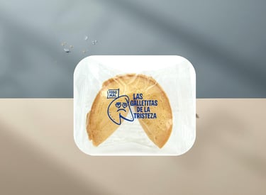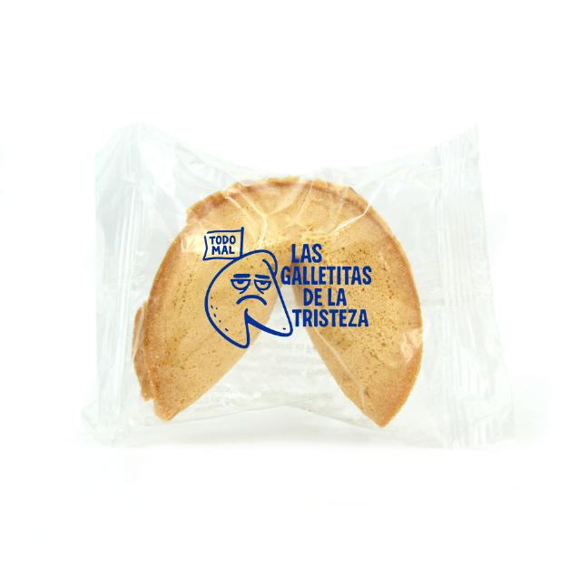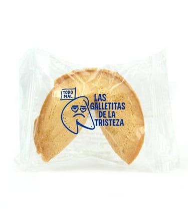 Descubre Las Galletitas de la Tristeza: caja de galletas de la fortuna con frases honestas y humor negro. Regalo ideal para derrotados elegidos, oficinas agotadas y almas sin filtro. Envío rápido España.”